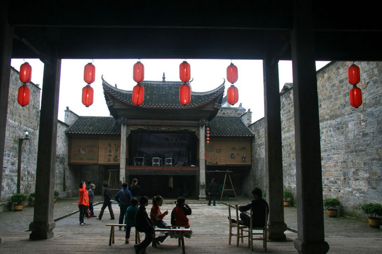 臨河戲臺(tái)幾乎天天都唱戲給烏舡子看。唱他們最愛(ài)看的湘劇,并且都是折子戲而非整場(chǎng)戲,因?yàn)檎麍?chǎng)戲常常要唱十天半月,烏舡子沒(méi)看得完就要返航。折子戲短,最切合烏舡子的停靠時(shí)日。唱的多半是“三國(guó)戲”:《空城計(jì)》、《定軍山》、《走麥城》、《三氣周瑜》,還有《黃鶴樓》、《摘梅桃》……數(shù)也數(shù)不完。戲班子都是由八元堂寧鄉(xiāng)會(huì)館從各地邀請(qǐng)來(lái)的,免費(fèi)公演。招呼戲班子的費(fèi)用由會(huì)館埋單,免不了要請(qǐng)到怡華樓、月華樓、奇珍閣等有名的飯館去吃“八大碗”,唱完戲還有夜宵招待,吃靖港的特色小吃。戲班子當(dāng)然就更賣力。烏舡子上的船老大不但愛(ài)看戲,還蠻會(huì)享受,他們把船搖得正正地對(duì)準(zhǔn)臨河戲臺(tái),和小老婆肩并肩雙雙坐船頭,一邊津津有味地看戲一邊津津有味地喝著靖港谷酒,吃著從靖港街上買來(lái)的香干子和鹵菜,搖頭晃腦,張嘴咋舌,樂(lè)不思蜀。也有許多古鎮(zhèn)居民來(lái)看免費(fèi)戲,他們常常爬到烏舡子上,與船老板和和老板娘一起看戲,船老板熱情大方,會(huì)讓出座位來(lái),邊看戲邊和本地居民扯談,對(duì)古鎮(zhèn)也就更加熟悉了解。