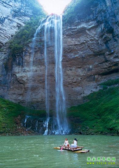 ▲這里有從天而降的流紗瀑布,宛如一皮皮輕紗飄飄揚揚兩百多米,創(chuàng)中國之最。
