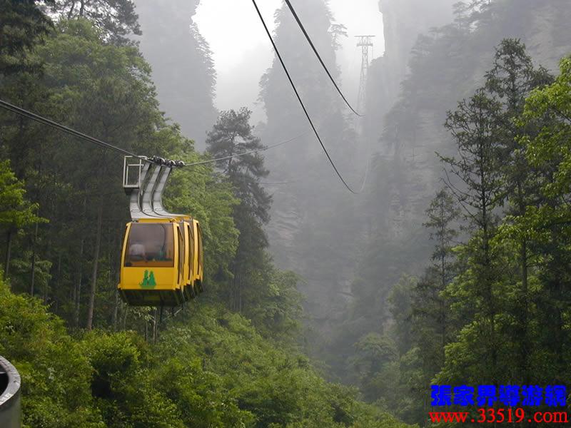 (索道站)現(xiàn)在,我們就要乘索道下山了。黃石寨(黃獅寨)索道是1995年5月至1997年9月臺灣證吉興業(yè)有限公司與張家界公園管理處合資興建的我市第一條觀光索道。索道線路水平距863,高差431米,運(yùn)行速度每秒8米,單向小時運(yùn)量948人,設(shè)備全部從法國波馬公司引進(jìn),總投資4000多萬人民幣。黃石寨(黃獅寨)索道的建成,為公園開辟了一條空中游覽線,填補(bǔ)了張家界無觀光索道的空白。古詩說:會當(dāng)凌絕頂,一覽眾山小。乘索道觀張家界公園,別是一番感受。