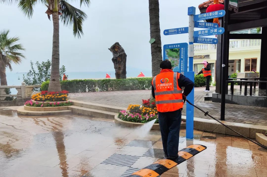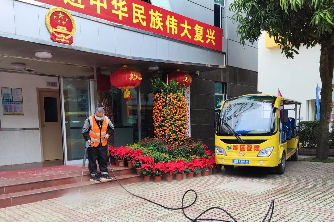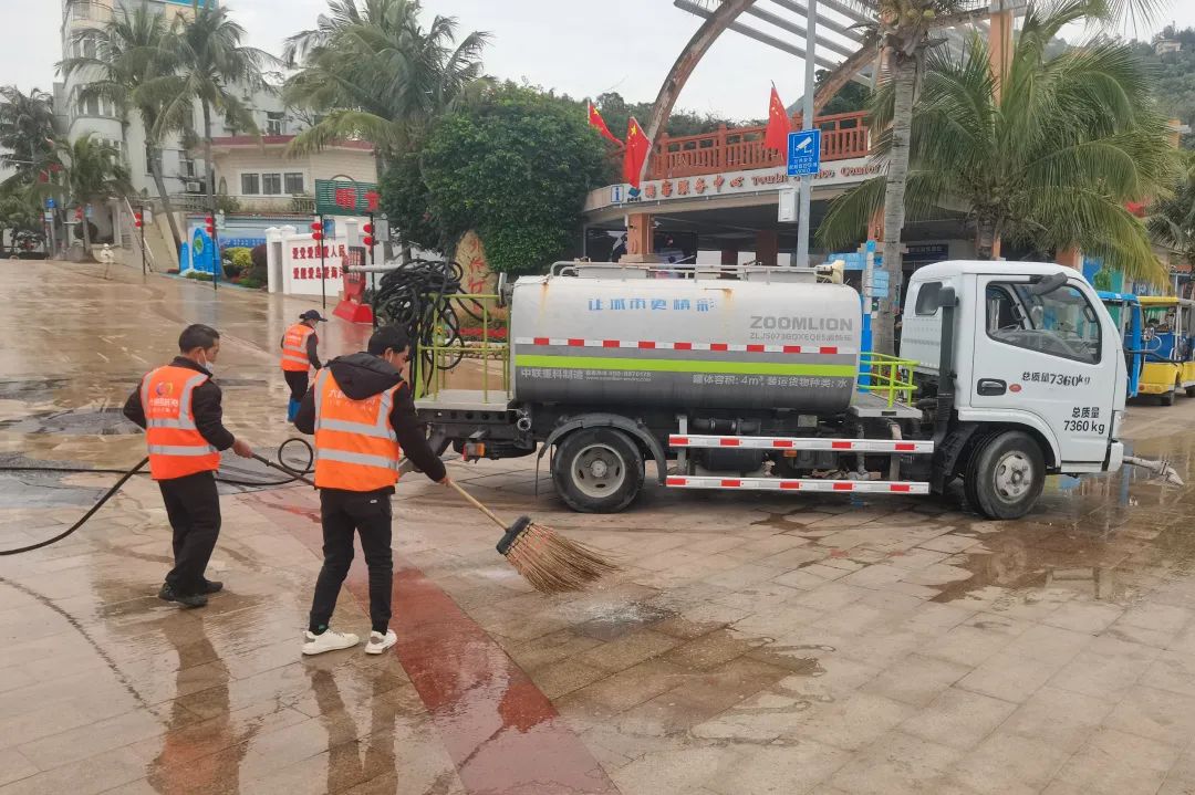 進(jìn)駐首周,大橫琴城資海島服務(wù)團(tuán)隊(duì)便迎來了春節(jié)長假的旺季保障任務(wù)。在時(shí)間緊、任務(wù)重的情況下,海島服務(wù)團(tuán)隊(duì)全體出動(dòng),積極配合擔(dān)桿鎮(zhèn)開展“除舊迎新專項(xiàng)行動(dòng)”,按照“大清掃、大沖洗、大整治”作業(yè)模式,全面沖洗路面的污漬、青苔,清理垃圾、落葉、雜草等,助力營造干凈、整潔、有序的海島環(huán)境。