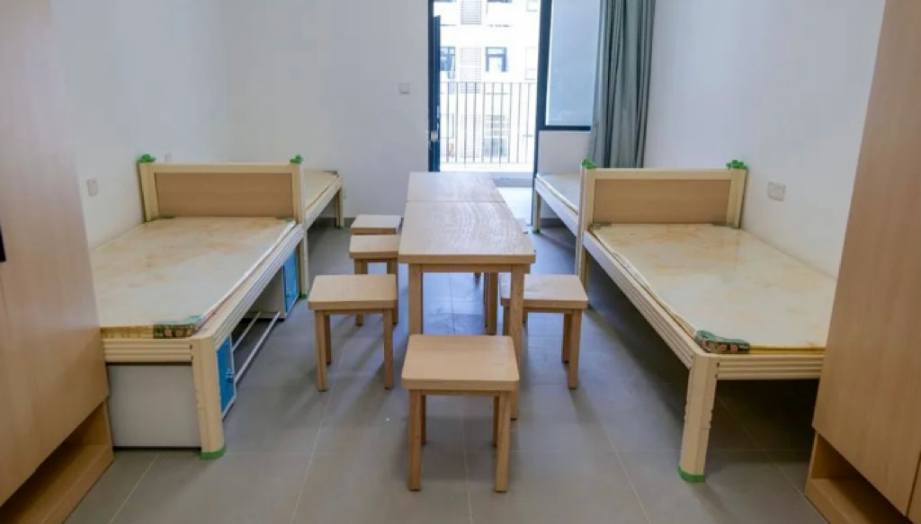 公共服務(wù)中心內(nèi),住宿配套形式多樣。提供四人間、雙人間等多種房型,并配有洗衣房、休閑平臺等多功能區(qū)域,為產(chǎn)業(yè)工人們提供“拎包入住”的便捷住宿服務(wù)。