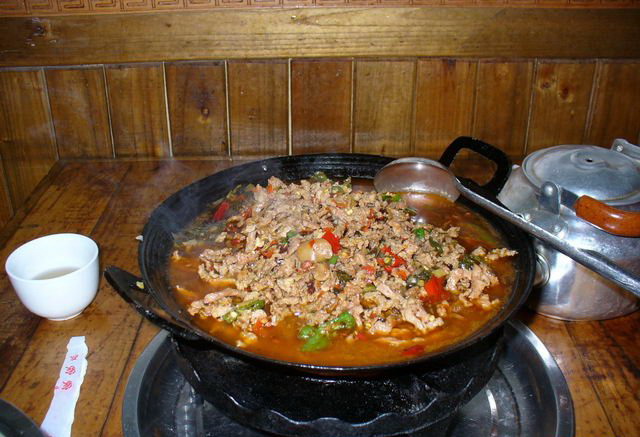 如果你想品嘗正宗的煙熏臘肉,還非得在張家界景區(qū)內(nèi)吃。在景區(qū)內(nèi)當(dāng)?shù)厝碎_的小飯館里可以吃到被炭火烤得烏黑的香噴噴的臘肉,只要把外層洗掉就行了。這種臘肉在城里是不可能吃到的,它是在農(nóng)家的灶上慢慢烤出來的。