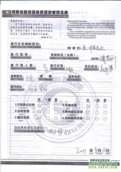 2011年8月16日王小姐旅游質(zhì)量反饋:很不錯(cuò)!