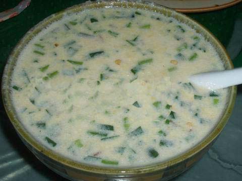 將用水浸泡過的黃豆用磨子磨碎,摻入切細(xì)的青菜葉,然后用溫火煮熟即可。此樣菜雖做法簡單,但營養(yǎng)價(jià)值極高且味鮮美,為當(dāng)?shù)厝顺S玫囊坏啦恕?/p>